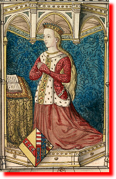 .........En 1473, elle hérita du duché de Lorraine et le transmit immédiatement à son fils René II. Elle fit de même en 1480, à la mort de son père, avec le duché de Bar.